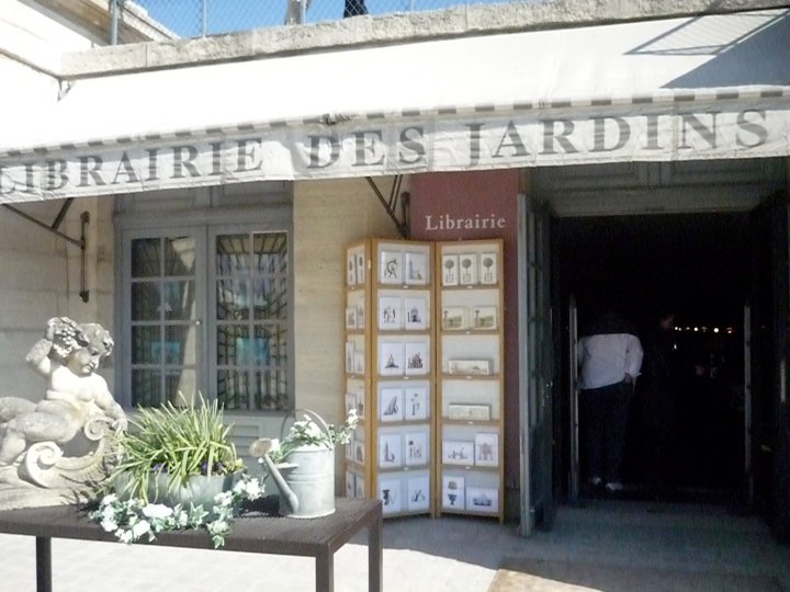 I den vestlige ende, helt oppe ved Concorde pladsen ligger der en stor, men ret overset boghandel. La Librairie du Jardin des Tuileries er en rigtig fin boghandel, med bøger om haver og botanik. Det vill for nogle måske ikke lyde så spændende, men det er faktisk en skæg butik. Der er fine coffee table books om fransk havekunst, praktiske bøger om havearkitektur, gode bøger om botanik og krydderurter, havens historie, og så alt mellem himmel og jord af fine postkort, legetøj, plakater, kunstbøger etc etc.