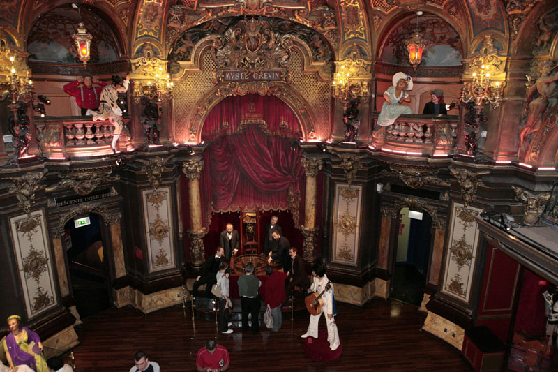 Herfra går man videre ind til et smukt gammel teater, hvor voksfigurerne begynder at stille op til fotografering. Og videre ind gennem snoede gange udspiller Frankrigs historie sig, godt blandet med diverse kendiser. Så man kan få taget billeder med Marie Antoinette, Elvis, Napoleon, Jean Paul Gaultier, Cecilia Bartoli, Michael Jackson, Lady Gaga, Jean Reno, Bruce Willis og mange mange flere, faktisk over 450. Også tegneserie figurer som Den Lille Prins, dyrerne fra Ice Age og Lara Croft er at finde her.