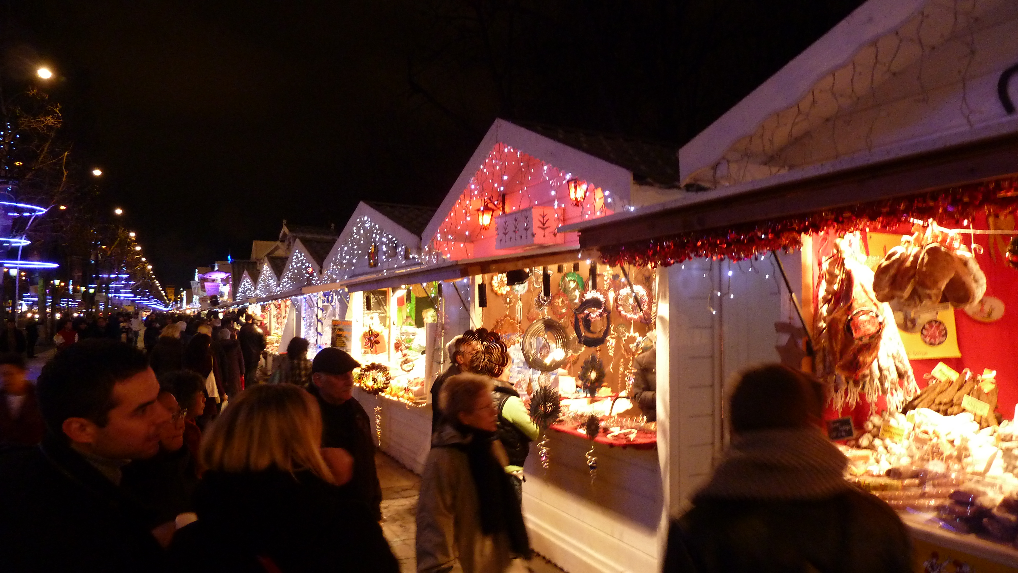 Fra midt november er hele Champs-Élysées pyntet op med lys i træerne, og halvdelen af den lange avenue er plastret til med juleboder, som sælger alskens julehalløj, lige fra legetøj til duftlys, snekugler og træfigurer. Der til kommer at næsten hver anden bod er en spisebod med gløgg, crêpes, varme kastanjer eller hotdogs og andet knapt så julet mad.