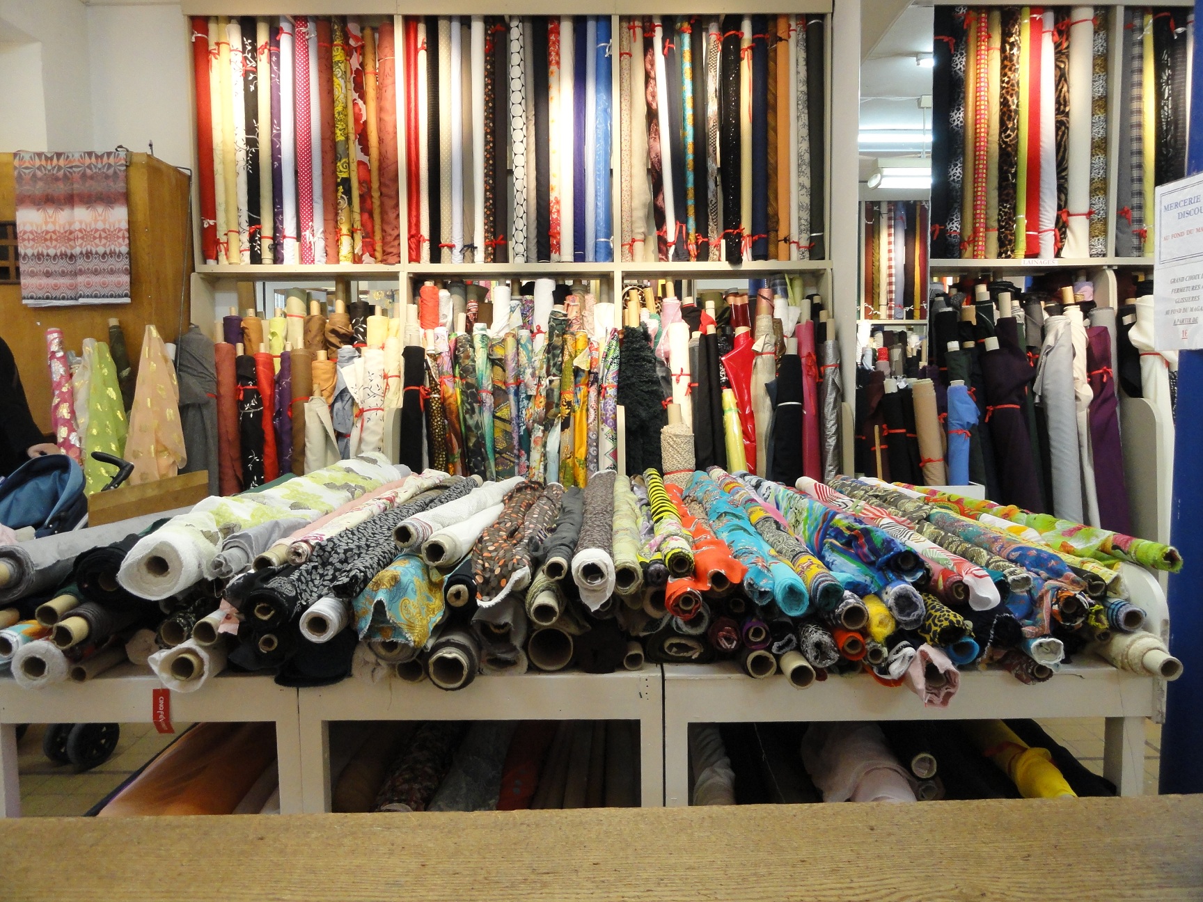 Skal man have stof, og vil man gerne have et stort udvalg at vælge fra, så tag til Montmartre. Tag metroen til Anvers, og gå op ad den frygteligt turistede gade Rue de Steinkerque. Når du så er kommet igennem de fristende tilbud på daggamle hotdogs og diverse postkort og berethatte, så drej da til højre ad Place Saint-Pierre, og du vil nu befinde dig i et stofmekka af en anden verden. Og når jeg siger en anden verden, så er det nærmest bogstavlig, eftersom man hurtigt kan få forvildet sig ind i butikker ala Aladdins hule, hvor man tænker at Sheherazade og Alibaba vil springe frem hvert øjeblik det skal være, og sælge dig ti meter guldbroderet saristof.